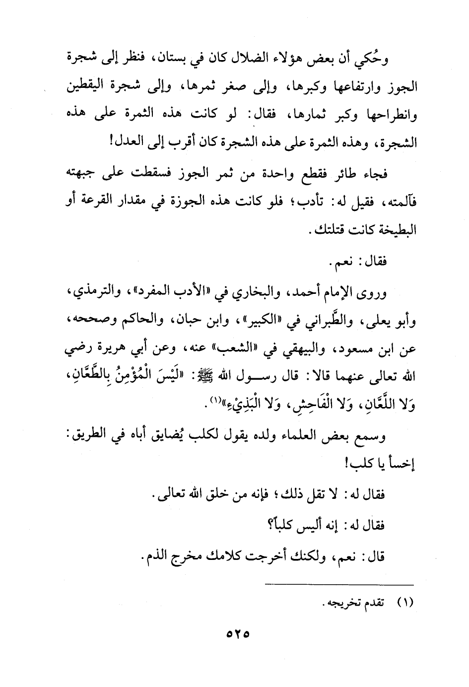 وروى الإمام أحمد، والبخاري في "الأدب المفرد"، والترمذي، وأبو يعلى، والطَّبراني في "الكبير"، وابن حبان، والحاكم وصححه، عن ابن مسعود، والبيهقي في "الشعب" عنه، وعن أبي هريرة رضي الله تعالى عنهما قالا: قال رسول الله - صلى الله عليه وسلم -: "لَيْسَ الْمُؤْمِنُ بِالطَّعَّانِ، وَلا اللَّعَّانِ، وَلا الْفَاحِشِ، وَلا الْبَذِيْءِ" (¬1).