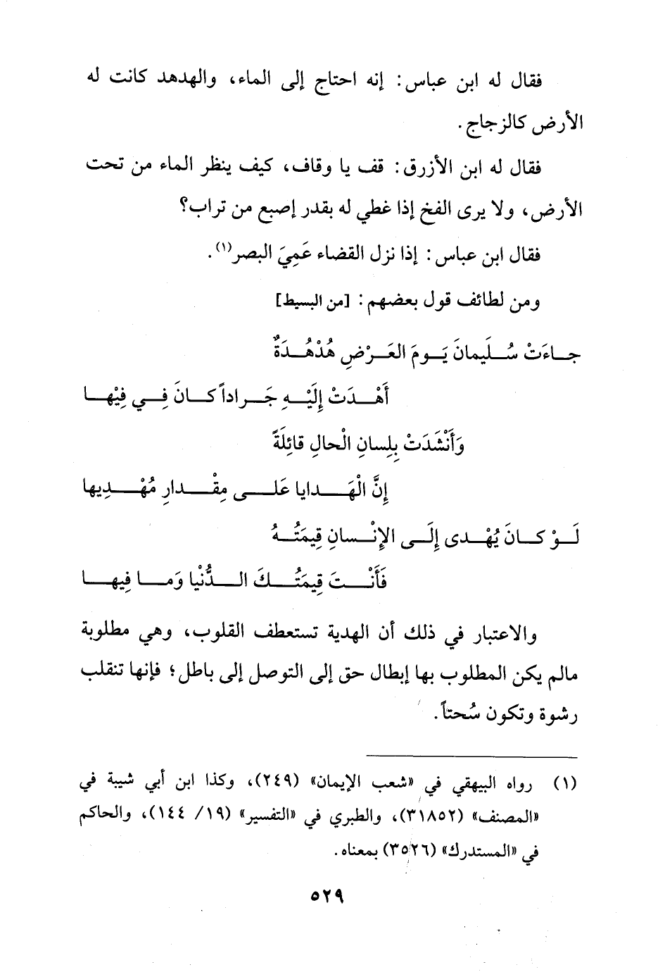 فقال له ابن عباس: إنه احتاج إلى الماء، والهدهد كانت له الأرض كالزجاج.