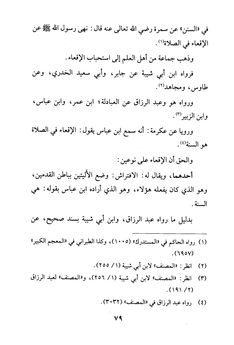 ورويا عن عكرمة: أنه سمع ابن عباس يقول: الإقعاء في الصلاة هو السنة (¬4).