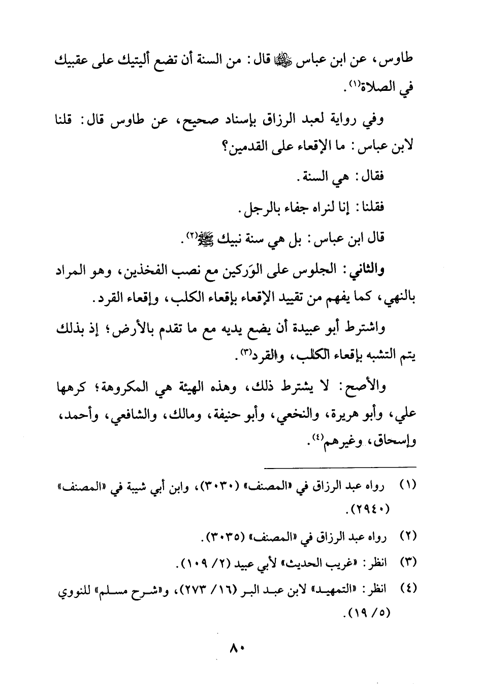 وفي رواية لعبد الرزاق بإسناد صحيح، عن طاوس قال: قلنا لابن عباس: ما الإقعاء على القدمين؟