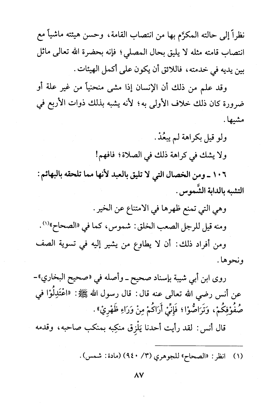 106 - ومن الخصال التي لا تليق بالعبد لأنها مما تلحقه بالبهائم: التشبه بالدابة الشَّموس.
