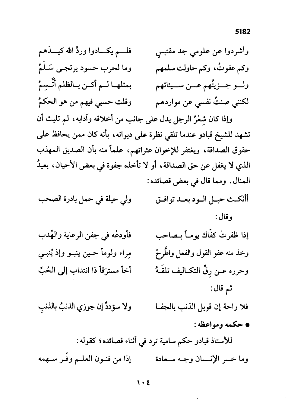 للأستاذ قبادو حكم سامية ترد في أثناء قصائده؛ كقوله: