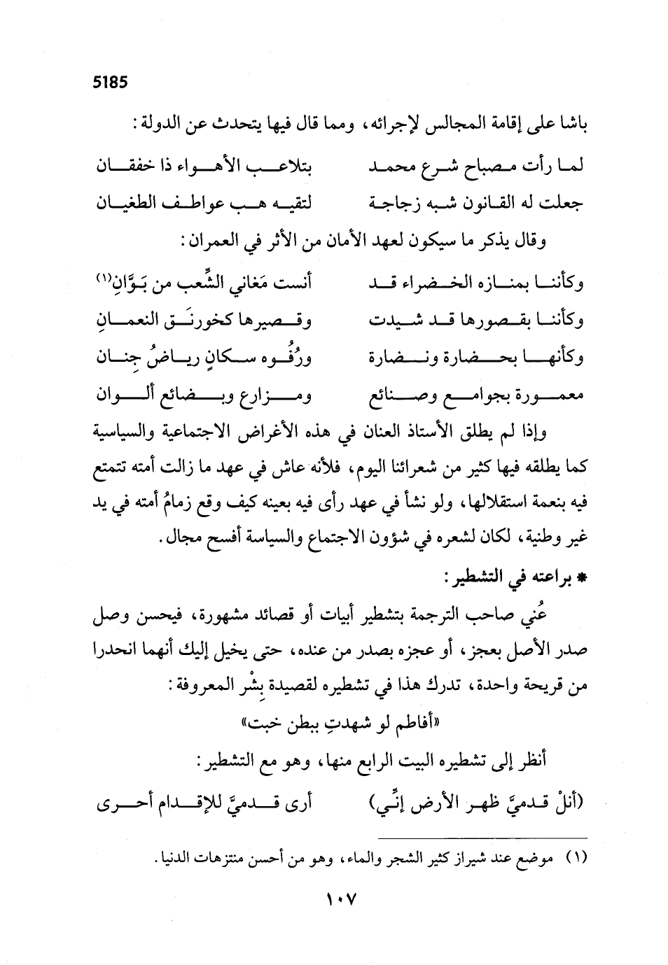انظر إلى تشطيره البيت الرابع منها، وهو مع التشطير: