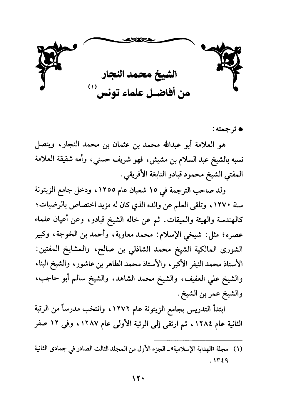الشيخ محمد النجار من أفاضل علماء تونس (¬1)