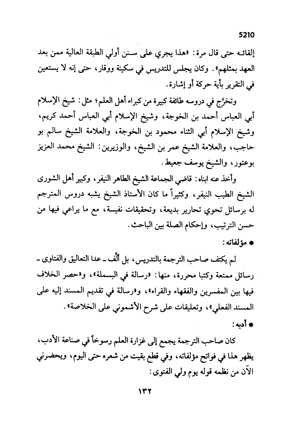 كان صاحب الترجمة يجمع إلى غزارة العلم رسوخاً في صناعة الأدب، يظهر هذا في فواتح مؤلفاته، وفي قطع بقيت من شعره حتى اليوم، ويحضرني الآن من نظمه قوله يوم ولي الفتوى: