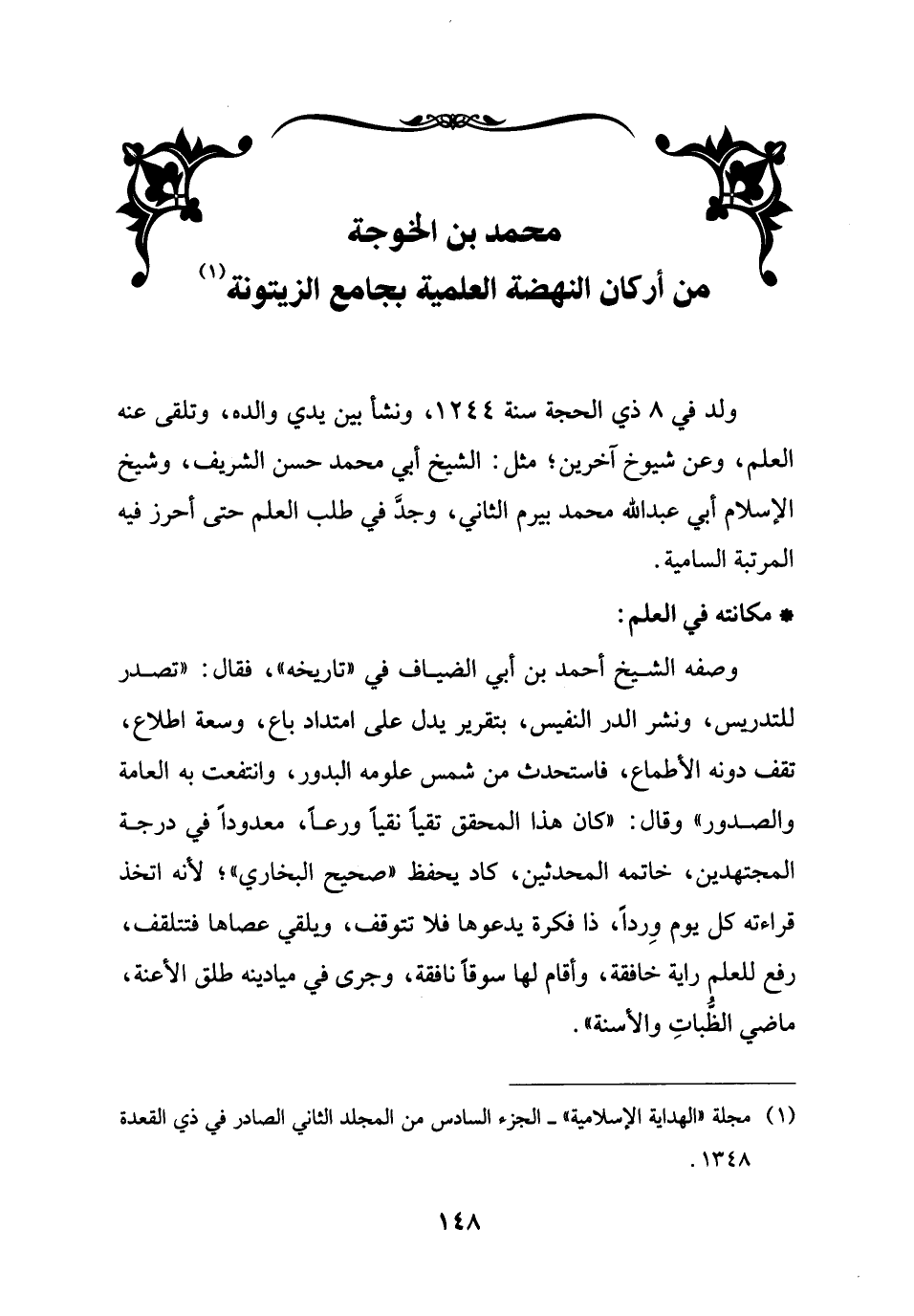 محمد بن الخوجة من أركان النهضة العلمية بجامع الزيتونة (¬1)