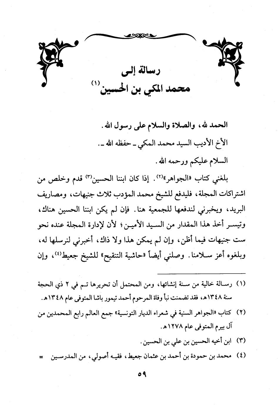 رسالة إلى محمد المكي بن الحسين (¬1)