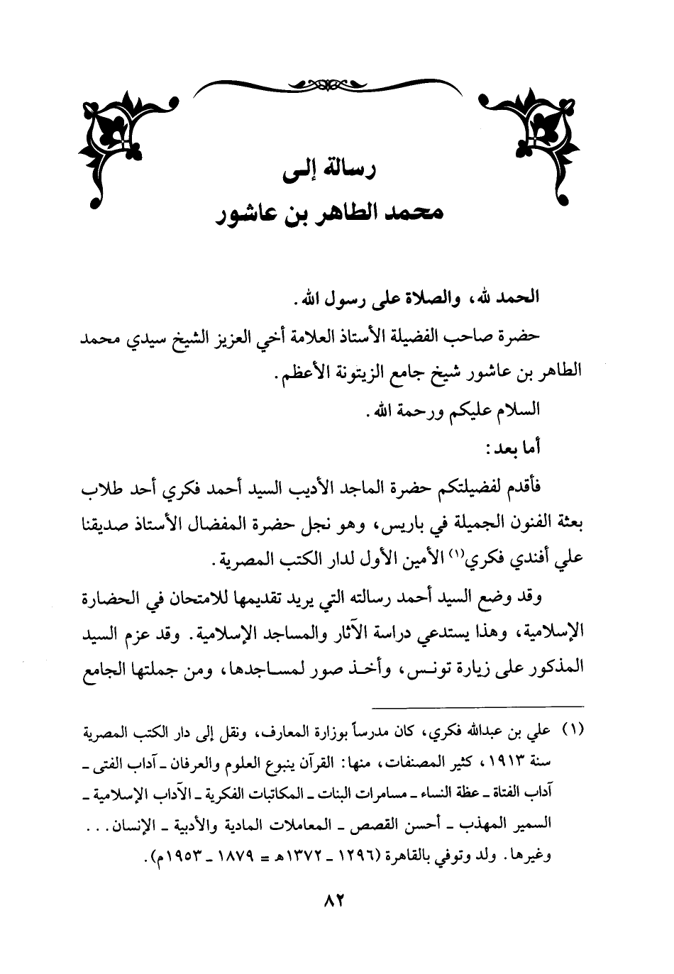 رسالة إلى محمد الطاهر بن عاشور