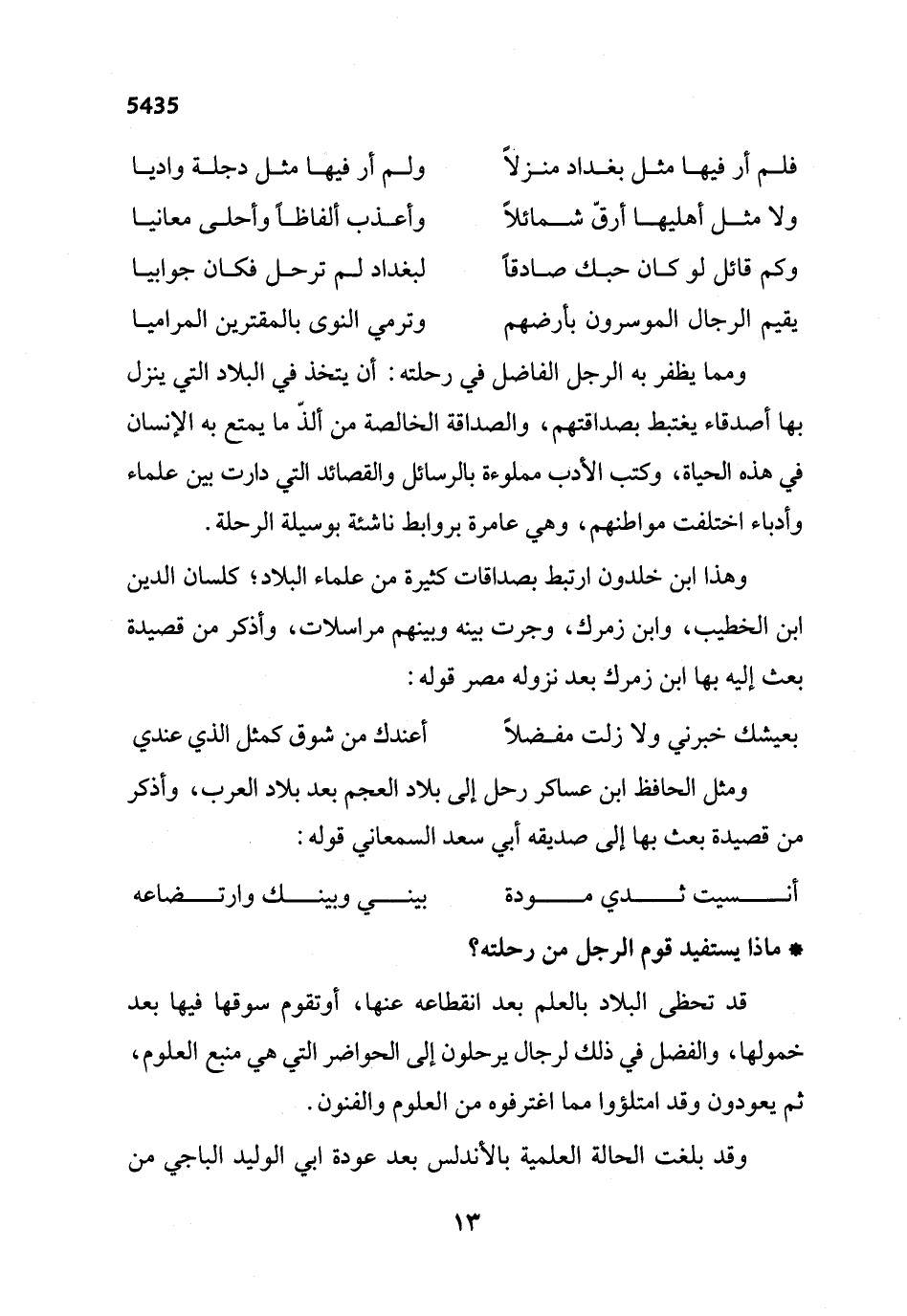 ومثل الحافظ ابن عساكر رحل إلى بلاد العجم بعد بلاد العرب، وأذكر من قصيدة بعث بها إلى صديقه أبي سعد السمعاني قوله: