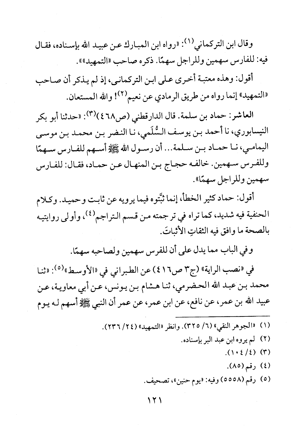 العاشر: حماد بن سلمة. قال الدارقطني (ص ٤٦٨) (¬٣): «حدثنا أبو بكر النيسابوري، نا أحمد بن يوسف السُّلَمي، نا النضر بن محمد بن موسى اليمامي، نا حماد بن سلمة ... أن رسول الله - صلى الله عليه وسلم - أسهم للفارس سهمًا وللفرس سهمين. خالفه حجاج بن المنهال عن حماد، فقال: للفارس سهمين وللراجل سهمًا».