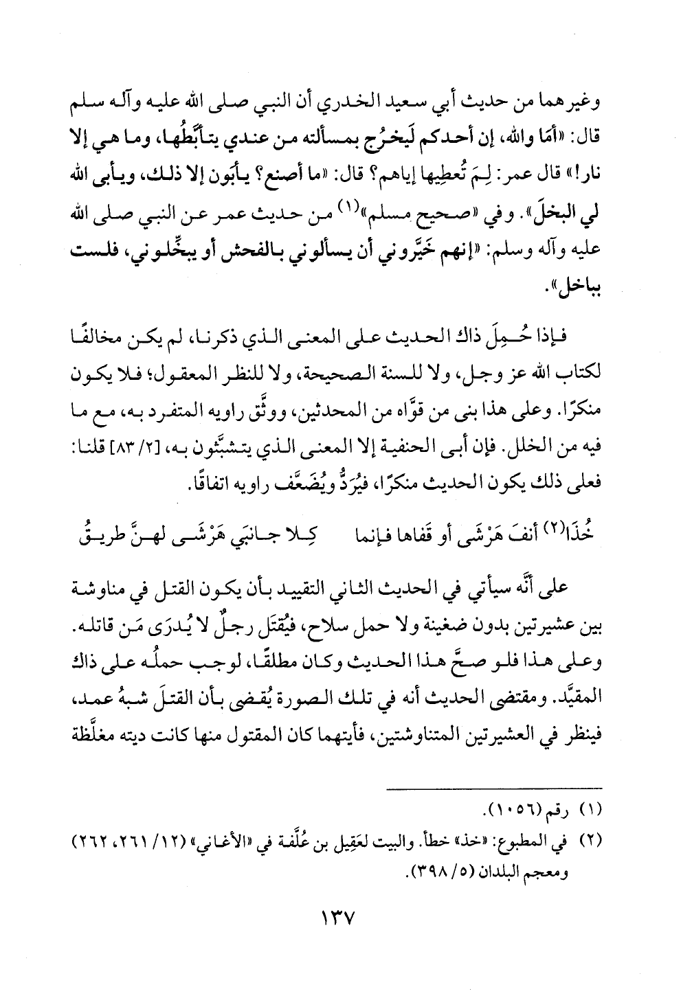 وغيرهما من حديث أبي سعيد الخدري أن النبي صلى الله عليه وآله سلم قال: «أمَا والله، إن أحدكم لَيخرُج بمسألته من عندي يتأ بَّطُها، وما هي إلا نار! » قال عمر: لِمَ تُعطِيها إياهم؟ قال: «ما أصنع؟ يأبَون إلا ذلك، ويأبى الله لي البخلَ». وفي «صحيح مسلم» (¬١) من حديث عمر عن النبي صلى الله عليه وآله وسلم: «إنهم خَيَّروني أن يسألوني بالفحش أو يبخِّلوني، فلست بباخل».