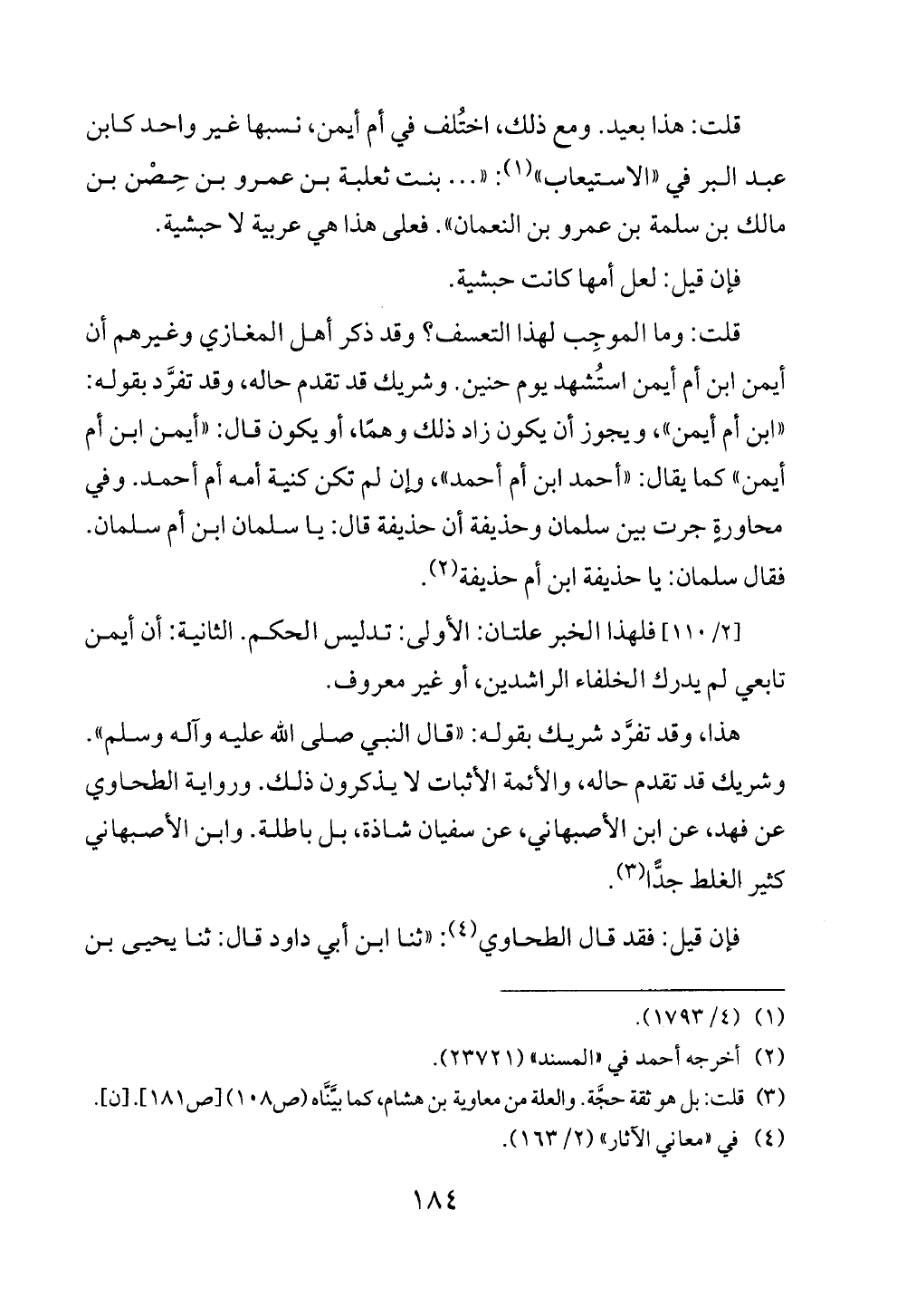 قلت: هذا بعيد. ومع ذلك، اختُلف في أم أيمن، نسبها غير واحد كابن عبد البر في «الاستيعاب» (¬١): « ... بنت ثعلبة بن عمرو بن حِصْن بن مالك بن سلمة بن عمرو بن النعمان». فعلى هذا هي عربية لا حبشية.