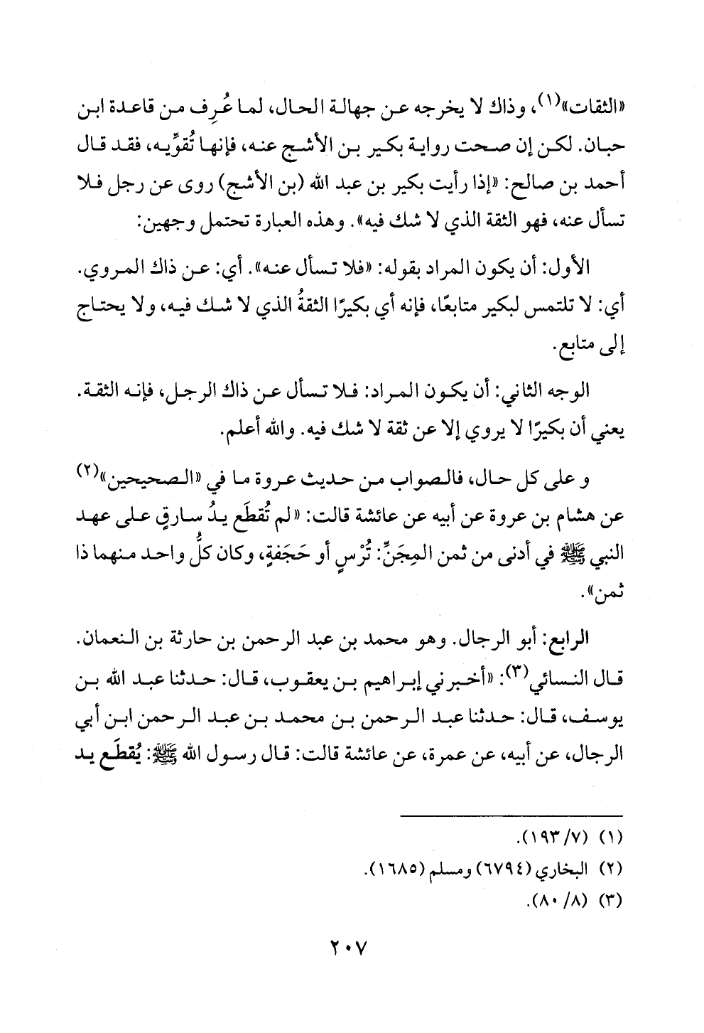 الرابع: أبو الرجال. وهو محمد بن عبد الرحمن بن حارثة بن النعمان. قال النسائي (¬٣): «أخبرني إبراهيم بن يعقوب، قال: حدثنا عبد الله بن يوسف، قال: حدثنا عبد الرحمن بن محمد بن عبد الرحمن ابن أبي الرجال، عن أبيه، عن عمرة، عن عائشة قالت: قال رسول الله - صلى الله عليه وسلم - : يُقطَع يد