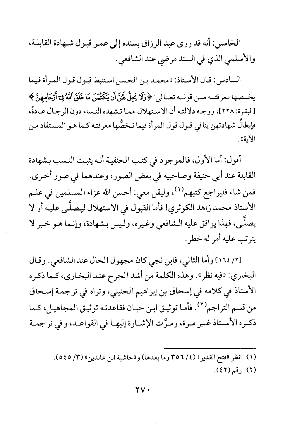 أقول: أما الأول، فالموجود في كتب الحنفية أنه يثبت النسب بشهادة القابلة عند أبي حنيفة وصاحبيه في بعض الصور، وعندهما في صور أخرى. فمن شاء فليراجع كتبهم (¬١)، وليقل معي: أحسن الله عزاء المسلمين في علم الأستاذ محمد زاهد الكوثري! فأما القبول في الاستهلال ليصلَّى عليه أو لا يصلَّى، فهذا يوافق عليه الشافعي وغيره، وليس بشهادة، وإنما هو خبر لا يترتب عليه أمر له خطر.