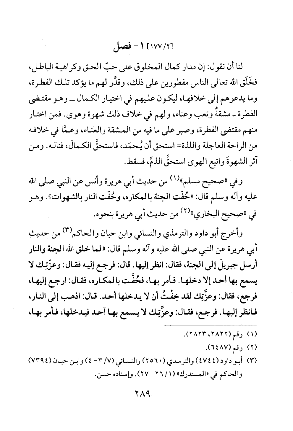 وفي "صحيح مسلم" (¬١) من حديث أبي هريرة وأنس عن النبي صلى الله عليه وآله وسلم قال: "حُفّت الجنة بالمكاره، وحُفّت النار بالشهوات". وهو في "صحيح البخاري" (¬٢) من حديث أبي هريرة بنحوه.