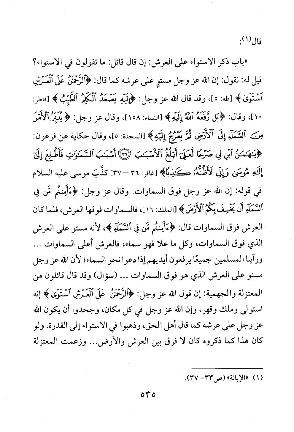 (¬١) «الإبانة» (ص ٣٣ - ٣٧).