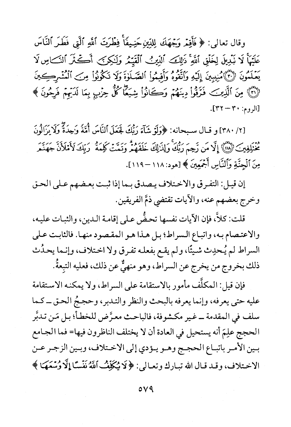 فإن قيل: المكلَّف مأمور بالاستقامة على السراط، ولا يمكنه الاستقامة عليه حتى يعرفه، وإنما يعرفه بالبحث والنظر والتدبر، وحججُ الحق ــ كما سلف في المقدمة ــ غير مكشوفة، فالباحث معرَّض للخطأ؛ بل مَن تدبَّر الحجج علِمَ أنه يستحيل في العادة أن لا يختلف الناظرون فيها= فما الجامع بين الأمر باتباع الحجج وهو يؤدي إلى الاختلاف، وبين الزجر عن الاختلاف، وقد قال الله تبارك وتعالى: {لَا يُكَلِّفُ اللَّهُ نَفْسًا إِلَّا وُسْعَهَا}