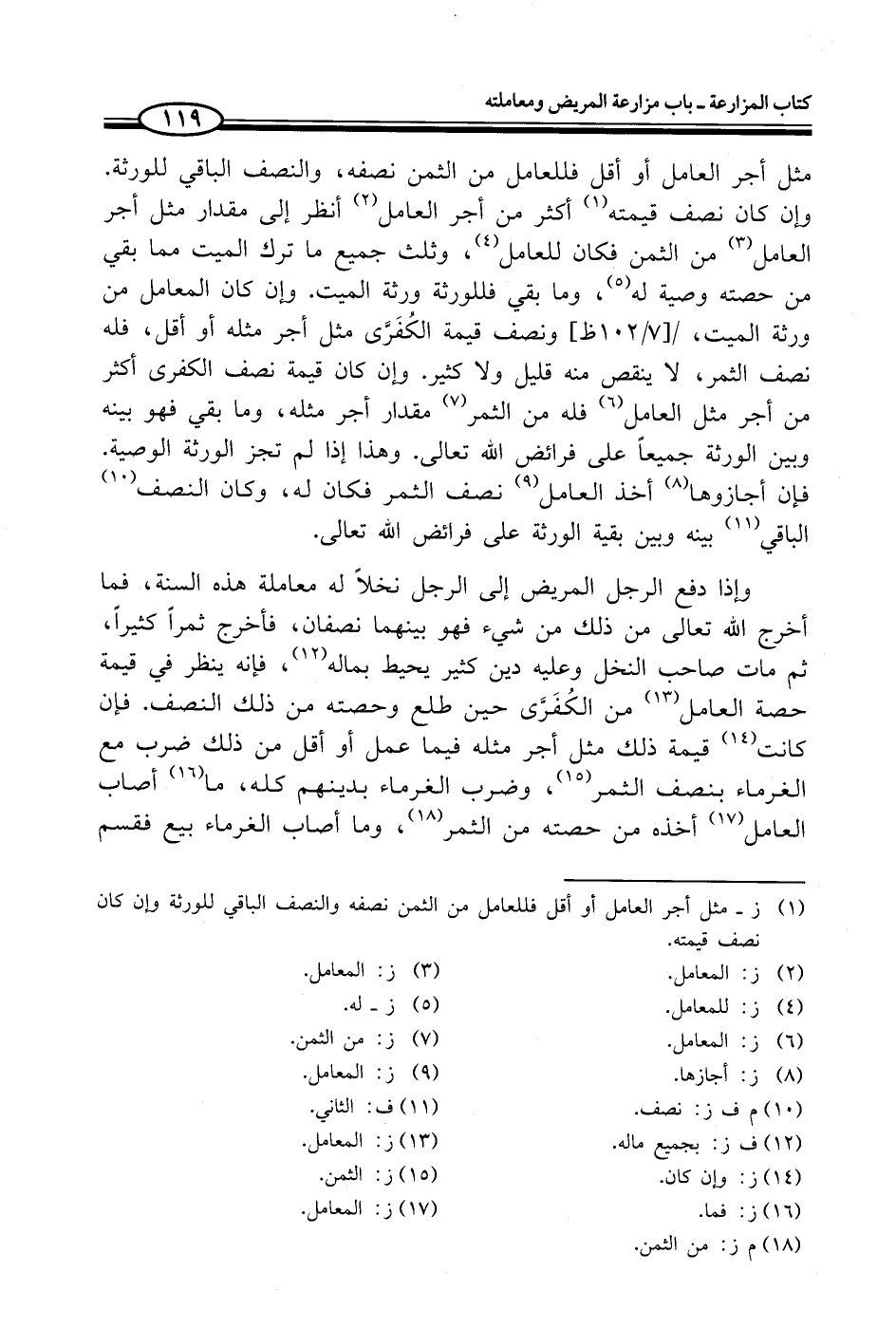 (¬1) ز - مثل أجر العامل أو أقل فللعامل من الثمن نصفه والنصف الباقي للورثة وإن كان نصف قيمته.