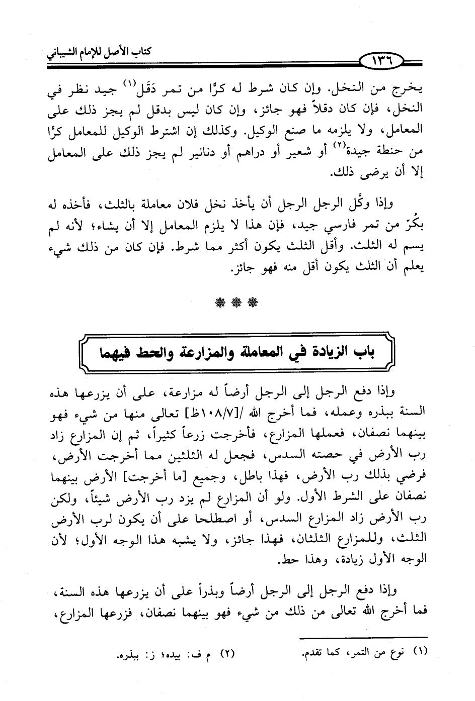 باب الزيادة في المعاملة والمزارعة والحط فيهما
