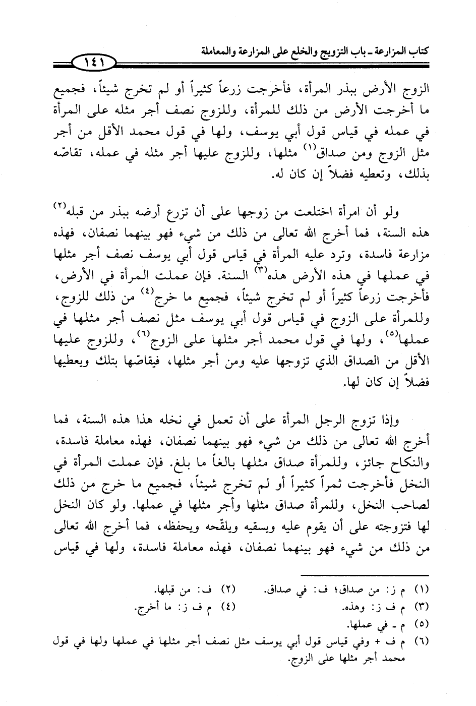 (¬6) م ف + وفي قياس قول أبي يوسف مثل نصف أجر مثلها في عملها ولها في قول محمد أجر مثلها على الزوج.