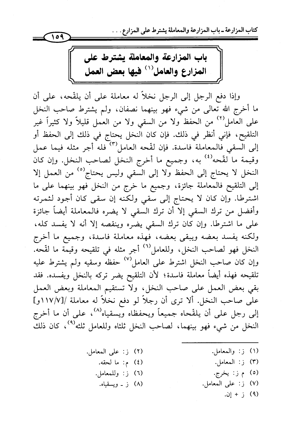 باب المزارعة والمعاملة يشترط على المزارع والعامل (¬1) فيها بعض العمل