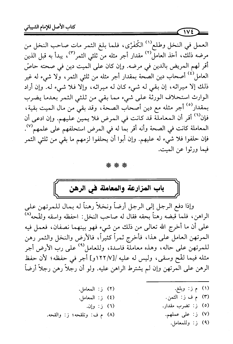 باب المزارعة والمعاملة في الرهن