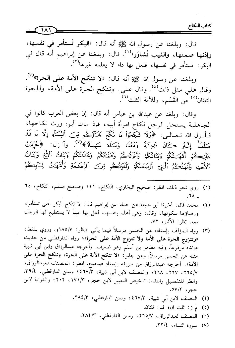 (¬3) رواه المؤلف بإسناده عن الحسن مرسلاً فيما يأتي. انظر: 7/ 185 و. وروي بلفظ: "وتتزوج الحرة على الأمة ولا تتزوج الأمة على الحرة"؛ رواه الدارقطني من حديث عائشة مرفوعاً. وفيه مظاهر بن أسلم وهو ضعيف. وأخرجه عبد الرزاق وابن أبي شيبة مثله عن الحسن مرسلاً. وعن جابر: "لا تنكح الأمة على الحرة، وتنكح الحرة على الأمة". أخرجه عبد الرزاق من طريقه بإسناد صحيح. انظر: المصنف لعبد الرزاق، 7/ 265، 267، 268؛ والمصنف لابن أبي شيبة، 3/ 467؛ وسنن الدارقطني، 4/ 39. وانظر للتفصيل والنقد: تلخيص الحبير لابن حجر، 3/ 171، 202؛ والدراية لابن حجر، 2/ 57.