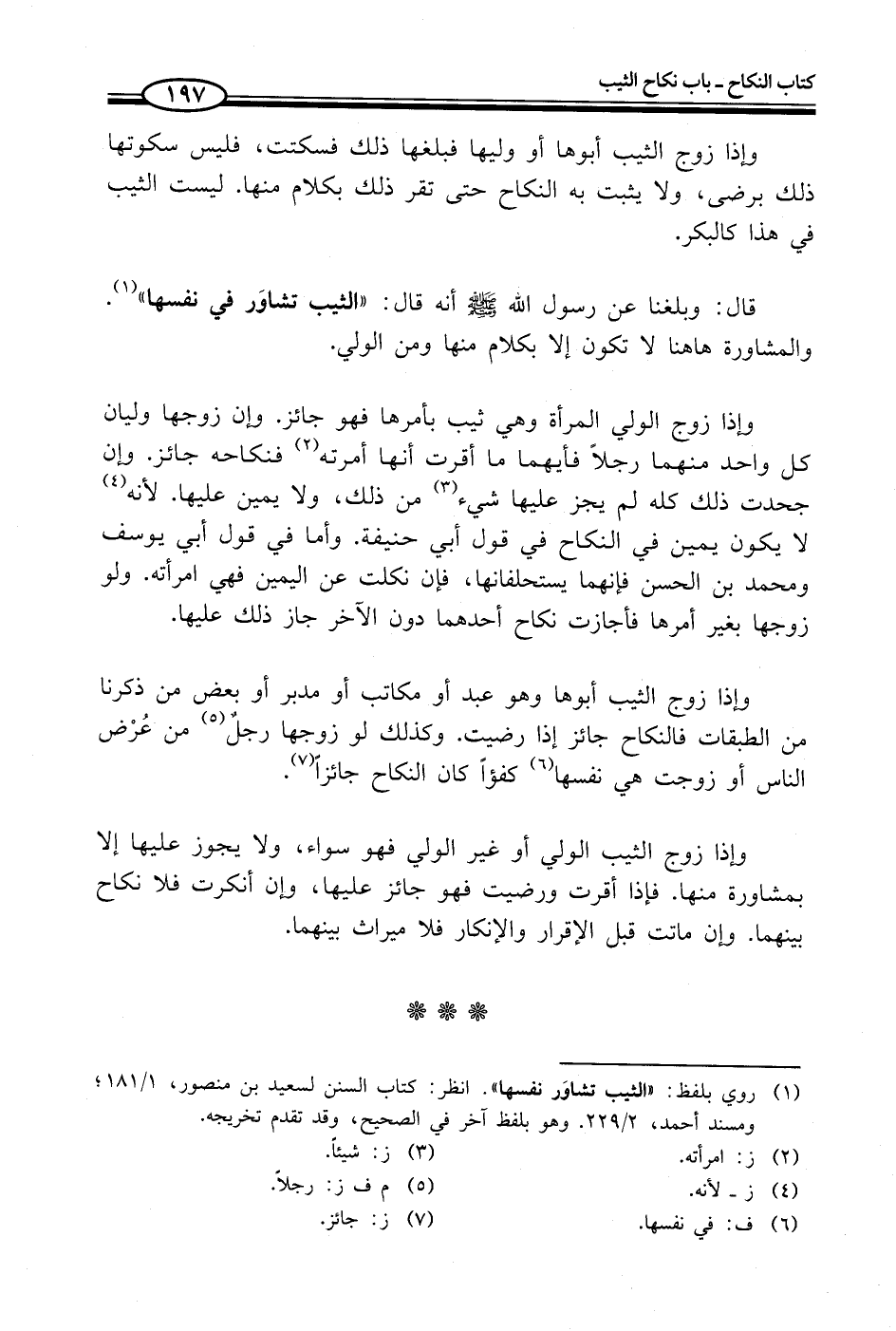 (¬1) روي بلفظ: "الثيب تشاوَر نفسها". انظر: كتاب السنن لسعيد بن منصور، 1/ 181؛ ومسند أحمد، 2/ 229. وهو بلفظ آخر في الصحيح، وقد تقدم تخريجه.