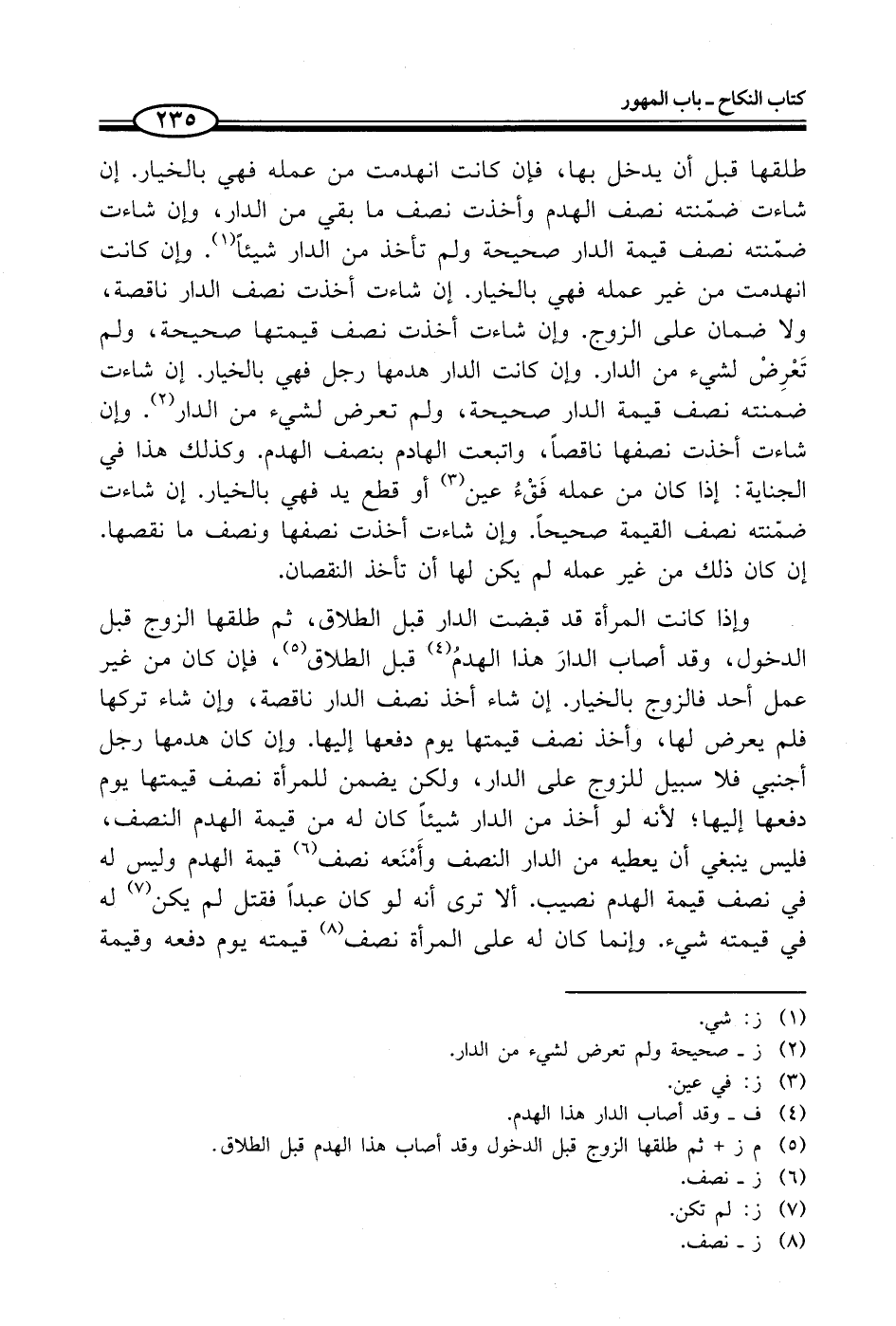 (¬5) م ز + ثم طلقها الزوج قبل الدخول وقد أصاب هذا الهدم قبل الطلاق.