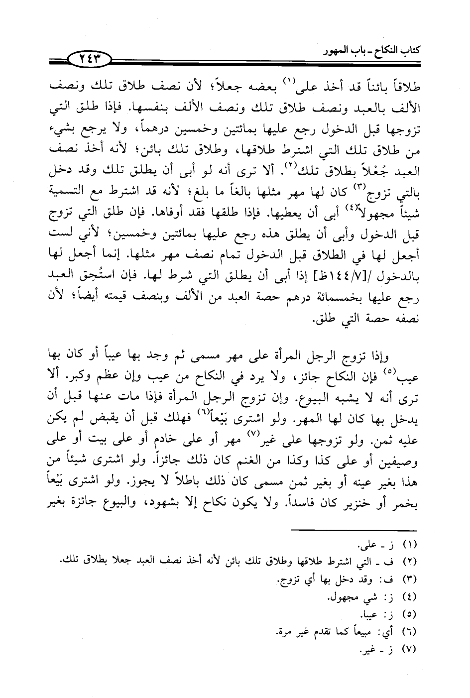 (¬2) ف - التي اشترط طلاقها وطلاق تلك بائن لأنه أخذ نصف العبد جعلا بطلاق تلك.