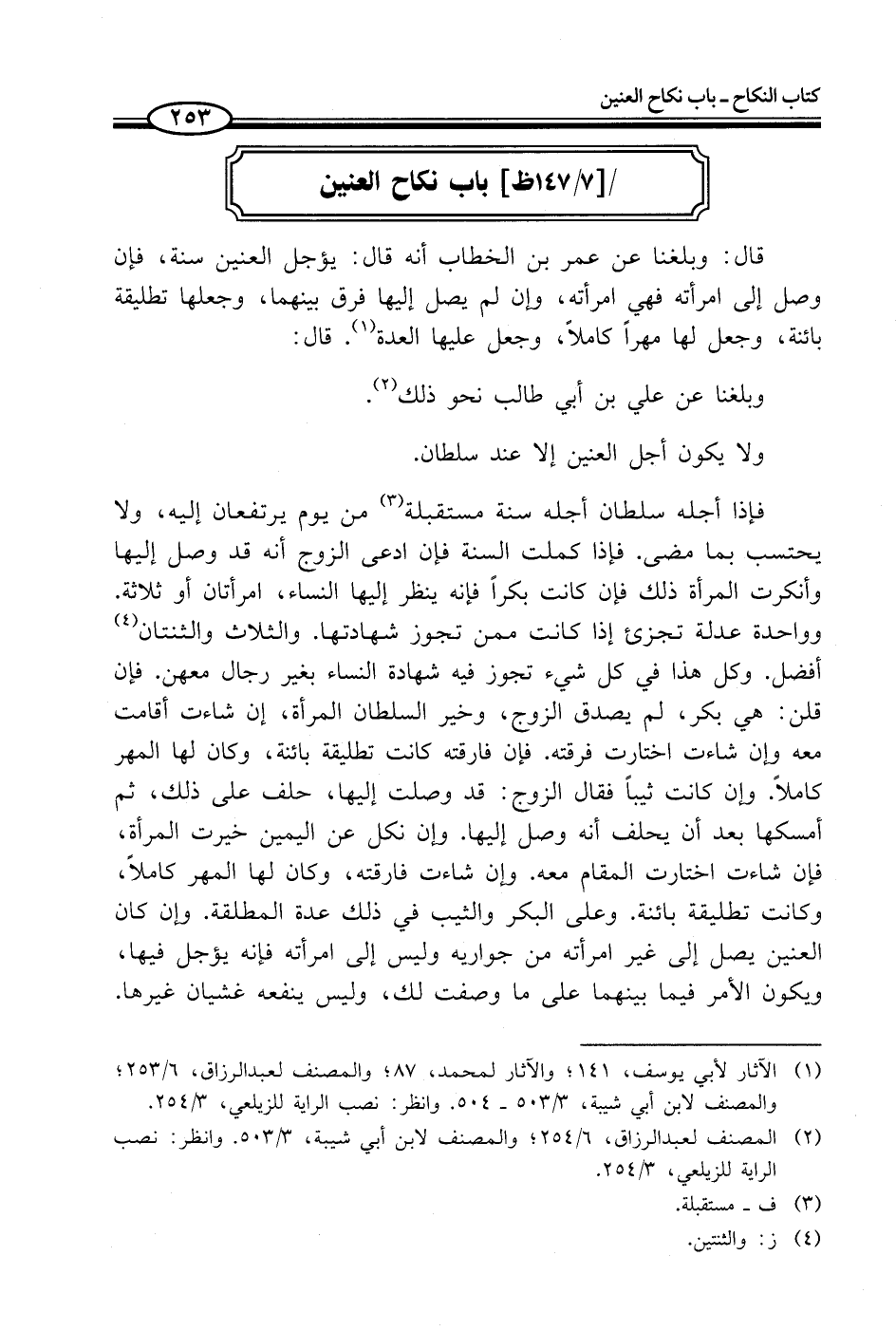 (¬2) المصنف لعبد الرزاق، 6/ 254؛ والمصنف لابن أبي شيبة، 3/ 503. وانظر: نصب الراية للزيلعي، 3/ 254.