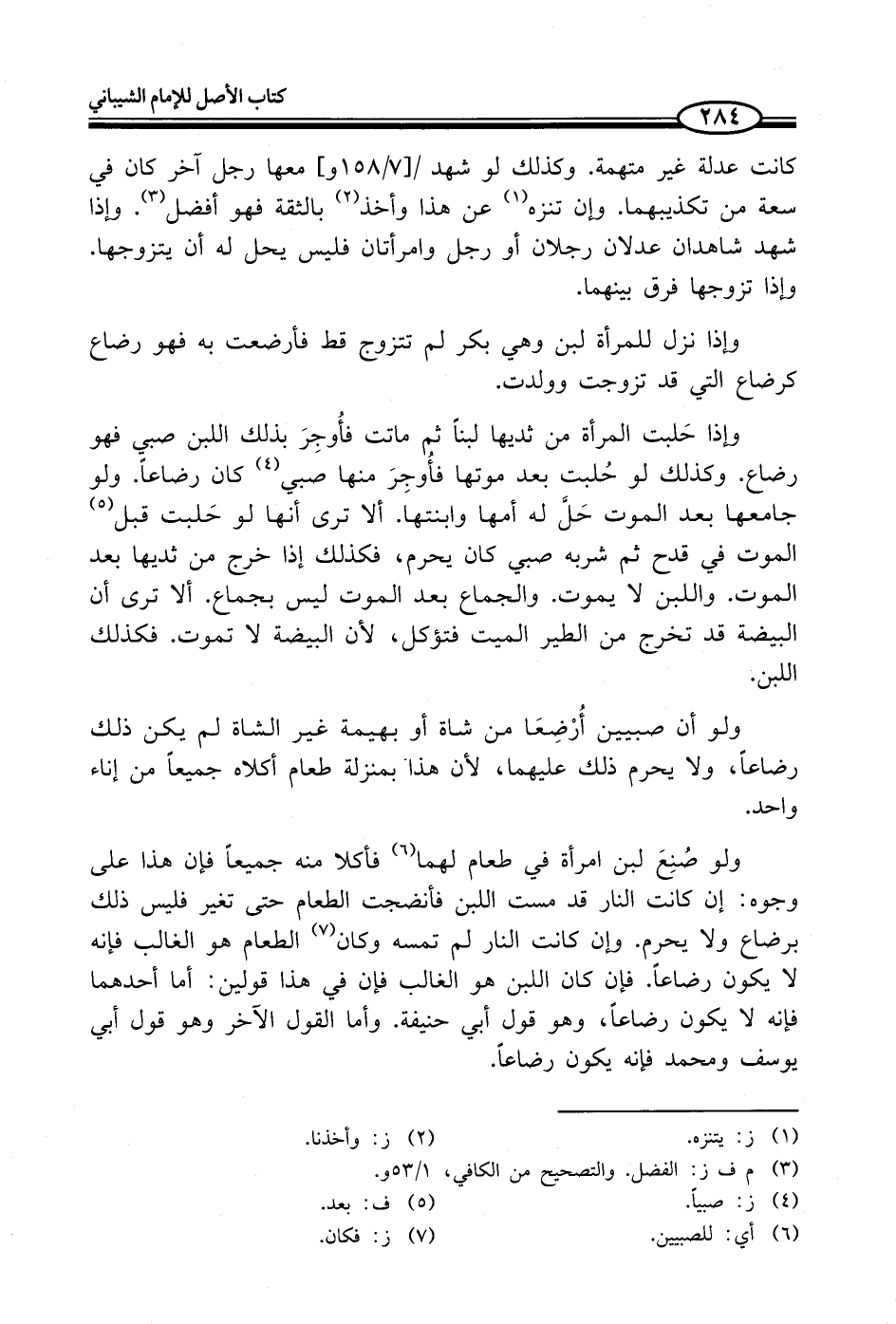 وإذا حَلبت المرأة من ثديها لبناً ثم ماتت فأُوجِرَ بذلك اللبن صبي فهو رضاع. وكذلك لو حُلبت بعد موتها فأُوجِرَ منها صبي (¬4) كان رضاعاً. ولو جامعها بعد الموت حَلَّ له أمها وابنتها. ألا ترى أنها لو حَلبت قبل (¬5) الموت في قدح ثم شربه صبي كان يحرم، فكذلك إذا خرج من ثديها بعد الموت. واللبن لا يموت. والجماع بعد الموت ليس بجماع. ألا ترى أن البيضة قد تخرج من الطير الميت فتؤكل، لأن البيضة لا تموت. فكذلك اللبن.