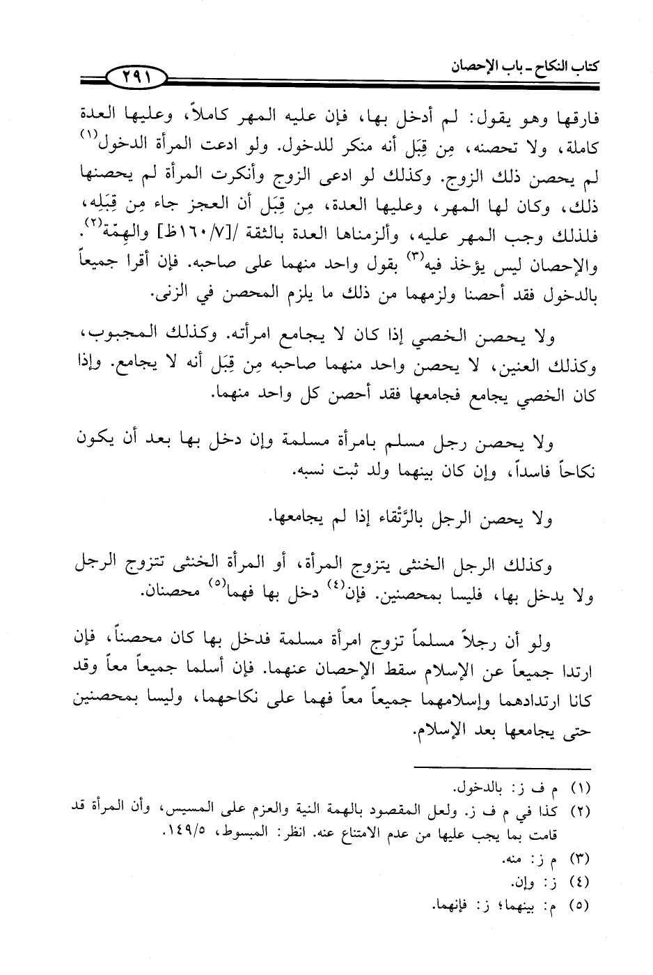 ولو أن رجلاً مسلماً تزوج امرأة مسلمة فدخل بها كان محصناً، فإن ارتدا جميعاً عن الإسلام سقط الإحصان عنهما. فإن أسلما جميعاً معاً وقد كانا ارتدادهما وإسلامهما جميعاً معاً فهما على نكاحهما، وليسا بمحصنين حتى يجامعها بعد الإسلام.