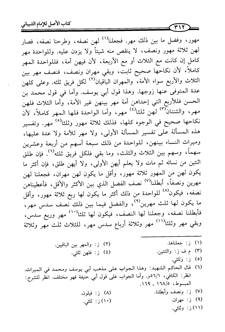 (¬6) قال الحاكم الشهيد: وهذا الجواب على مذهب أبي يوسف ومحمد في الميراث. انظر: الكافي، 1/ 56 و. وأما الجواب على قول أبي حنيفة فهو مختلف. انظر للشرح: المبسوط، 5/ 168 - 169.