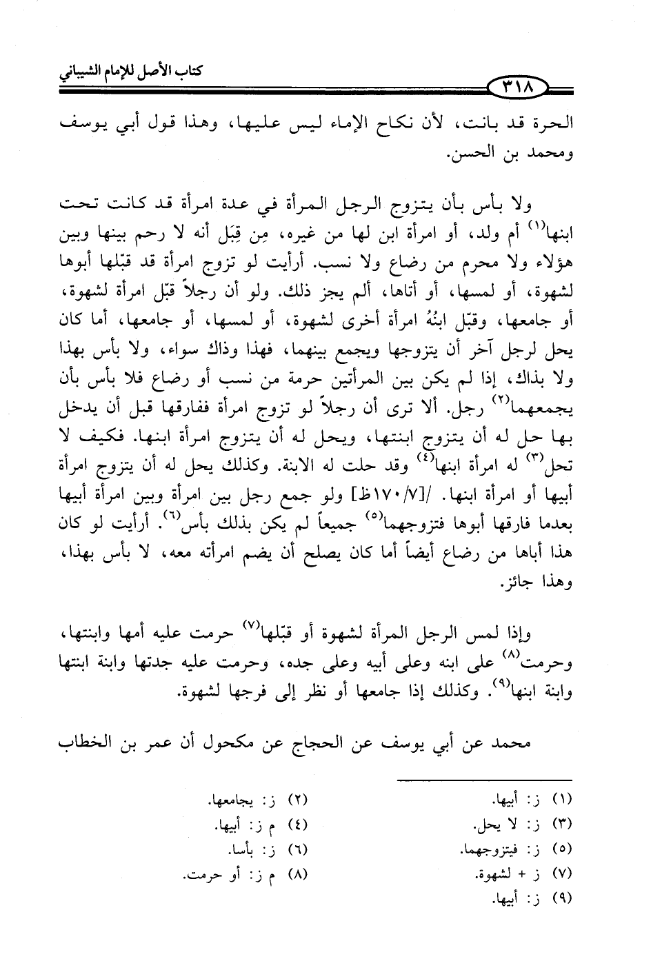 ولا بأس بأن يتزوج الرجل المرأة في عدة امرأة قد كانت تحت ابنها (¬1) أم ولد، أو امرأة ابن لها من غيره، مِن قِبَل أنه لا رحم بينها وبين هؤلاء ولا محرم من رضاع ولا نسب. أرأيت لو تزوج امرأة قد قبّلها أبوها لشهوة، أو لمسها، أو أتاها، ألم يجز ذلك. ولو أن رجلاً قبّل امرأة لشهوة، أو جامعها، وقبّل ابنُهُ امرأة أخرى لشهوة، أو لمسها، أو جامعها، أما كان يحل لرجل آخر أن يتزوجها ويجمع بينهما، فهذا وذاك سواء، ولا بأس بهذا ولا بذاك، إذا لم يكن بين المرأتين حرمة من نسب أو رضاع فلا بأس بأن يجمعهما (¬2) رجل. ألا ترى أن رجلاً لو تزوج امرأة ففارقها قبل أن يدخل بها حل له أن يتزوج ابنتها، ويحل له أن يتزوج امرأة ابنها. فكيف لا تحل (¬3) له امرأة ابنها (¬4) وقد حلت له الابنة. وكذلك يحل له أن يتزوج امرأة أبيها أو امرأة ابنها. ولو جمع رجل بين امرأة وبين امرأة أبيها بعدما فارقها أبوها فتزوجهما (¬5) جميعاً لم يكن بذلك بأس (¬6). أرأيت لو كان هذا أباها من رضاع أيضاً أما كان يصلح أن يضم امرأته معه، لا بأس بهذا، وهذا جائز.