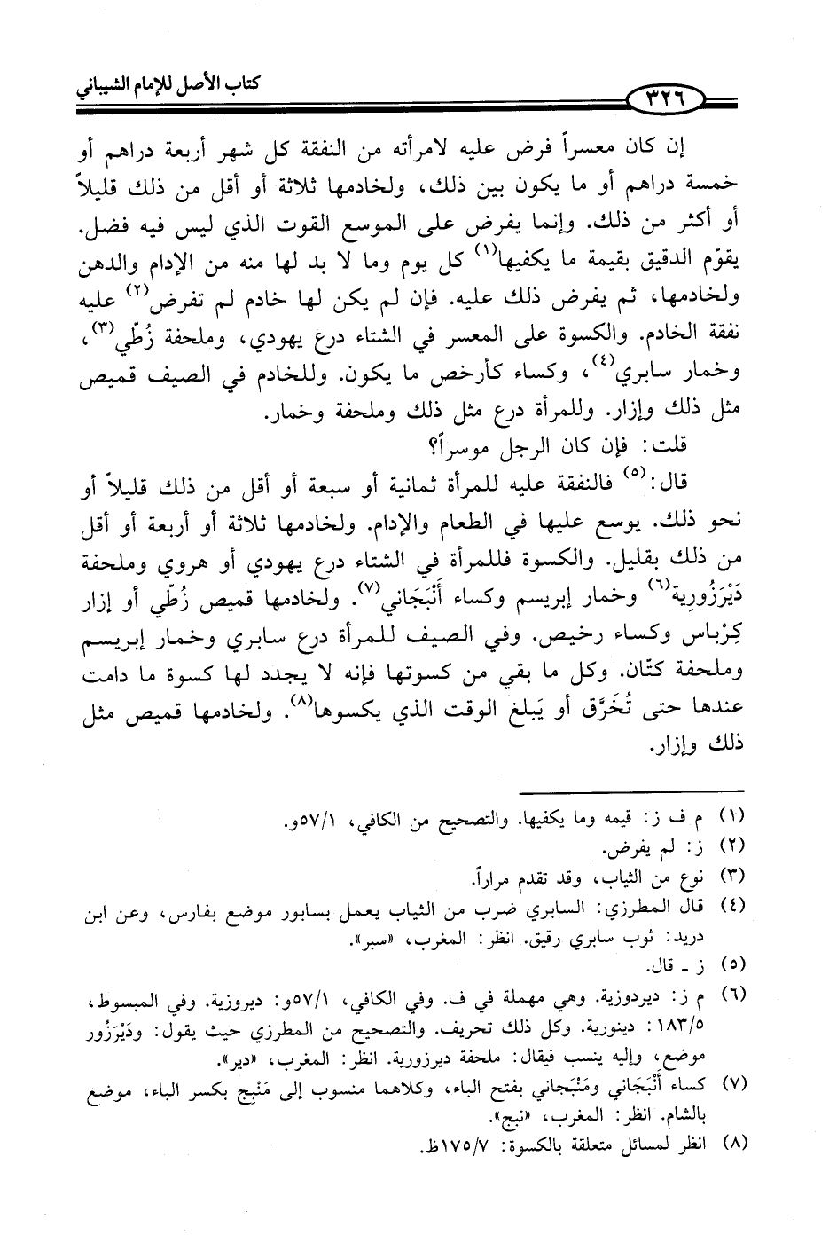 (¬8) انظر لمسائل متعلقة بالكسوة: 7/ 175 ظ.