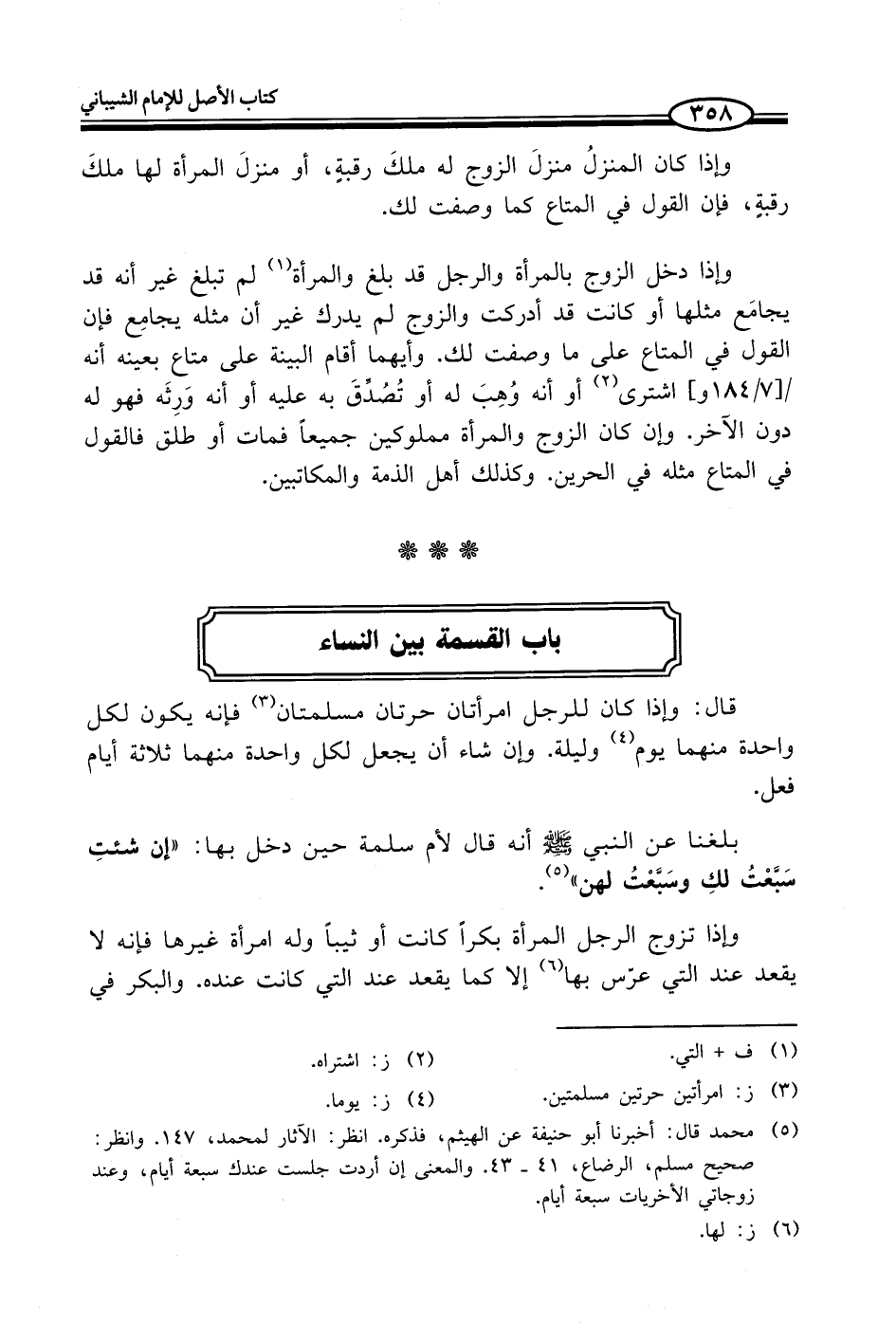 (¬5) محمد قال: أخبرنا أبو حنيفة عن الهيثم، فذكره. انظر: الآثار لمحمد، 147. وانظر: صحيح مسلم، الرضاع، 41 - 43. والمعنى إن أردت جلست عندك سبعة أيام، وعند زوجاتي الأخريات سبعة أيام.