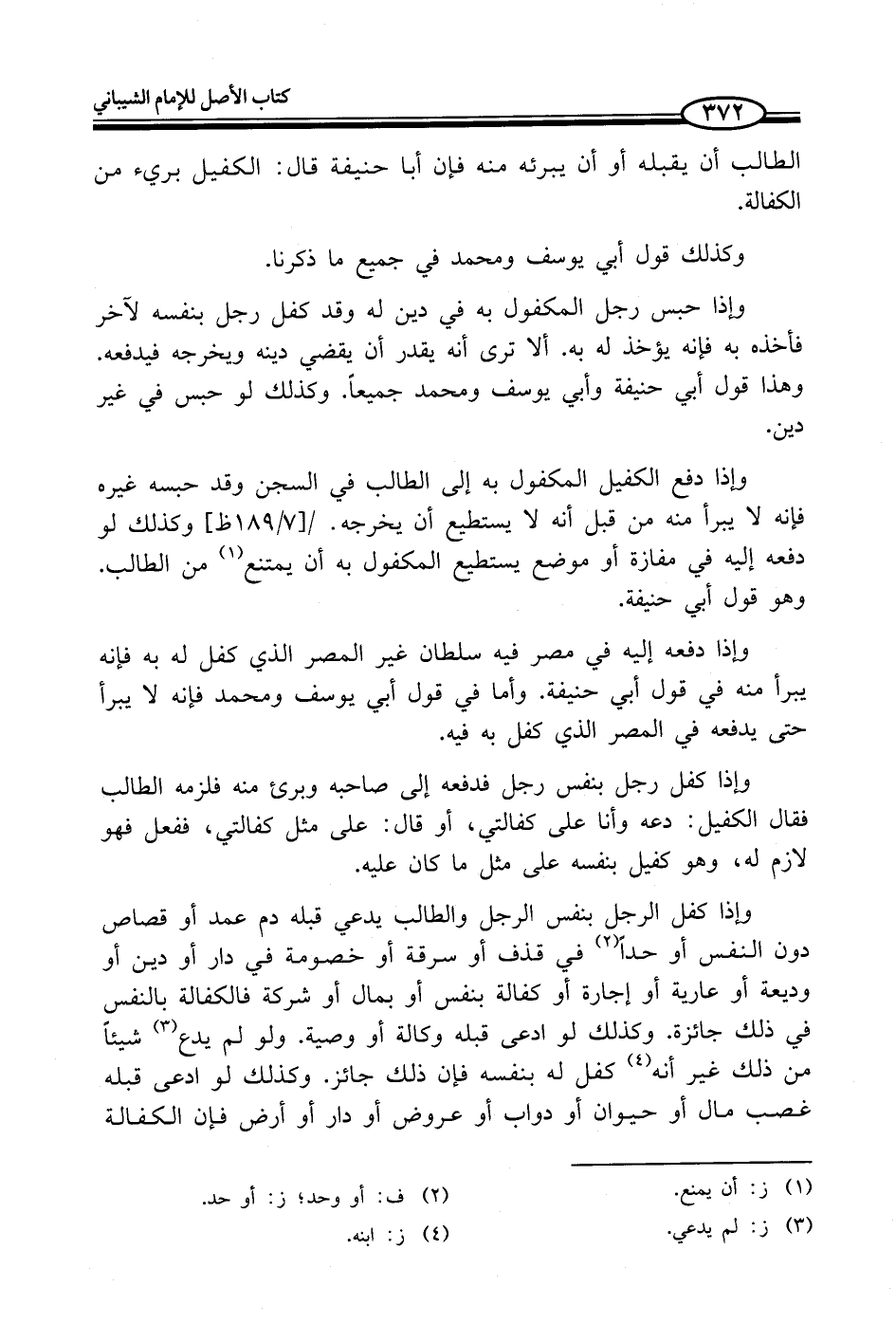 وإذا كفل الرجل بنفس الرجل والطالب يدعي قبله دم عمد أو قصاص دون النفس أو حدًا (¬2) في قذف أو سرقة أو خصومة في دار أو دين أو وديعة أو عارية أو إجارة أو كفالة بنفس أو بمال أو شركة فالكفالة بالنفس في ذلك جائزة. وكذلك لو ادعى قبله وكالة أو وصية. ولو لم يدع (¬3) شيئاً من ذلك غير أنه (¬4) كفل له بنفسه فإن ذلك جائز. وكذلك لو ادعى قبله غصب مال أو حيوان أو دواب أو عروض أو دار أو أرض فإن الكفالة