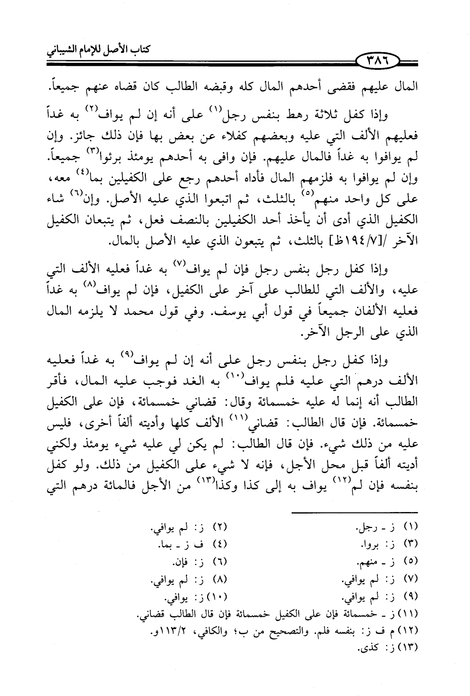 (¬11) ز - خمسمائة فإن على الكفيل خمسمائة فإن قال الطالب قضاني.
