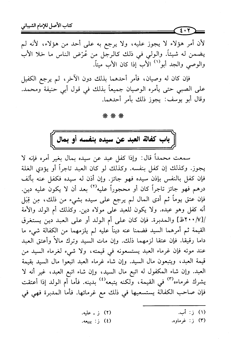 باب كفالة العبد عن سيده بنفسه أو بمال