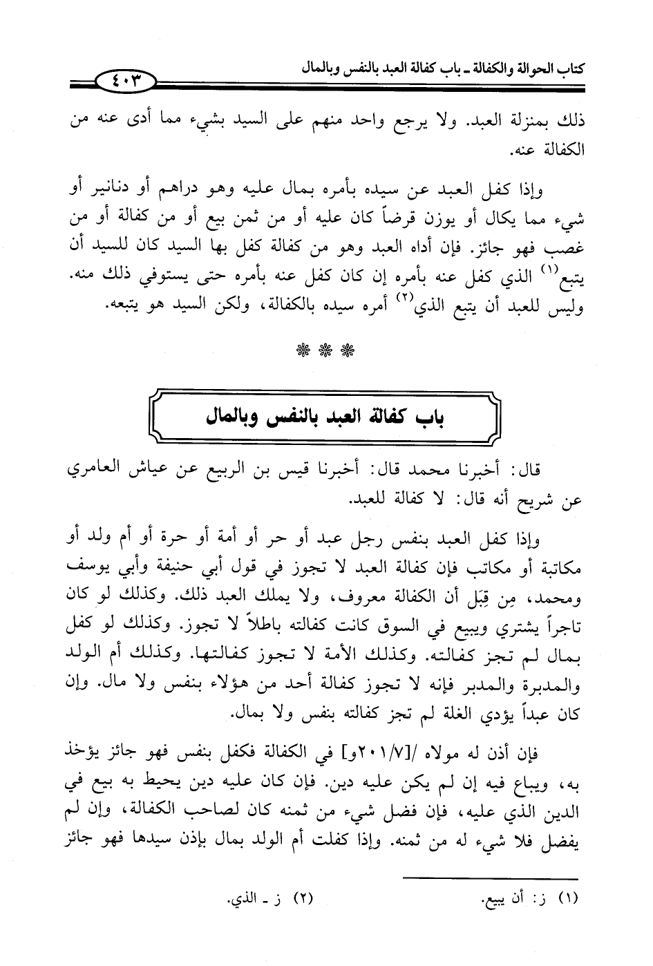 باب كفالة العبد بالنفس وبالمال