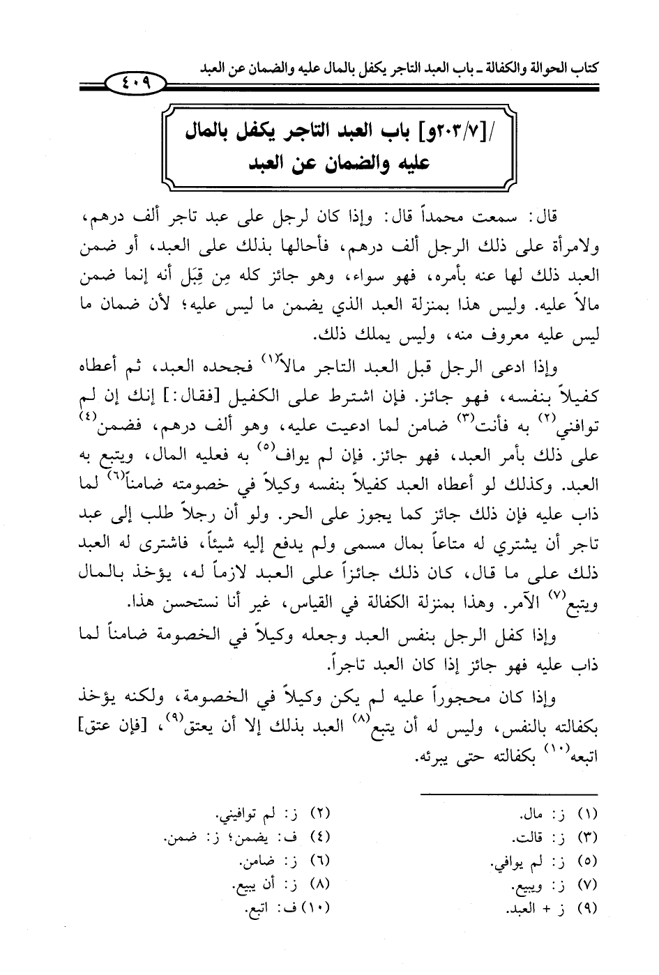 باب العبد التاجر يكفل بالمال عليه والضمان عن العبد