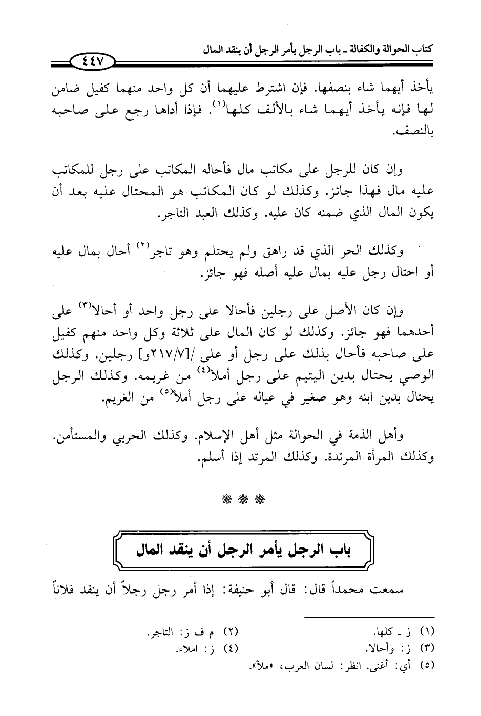 سمعت محمداً قال: قال أَبو حنيفة: إذا أمر رجل رجلاً أن ينقد فلاناً