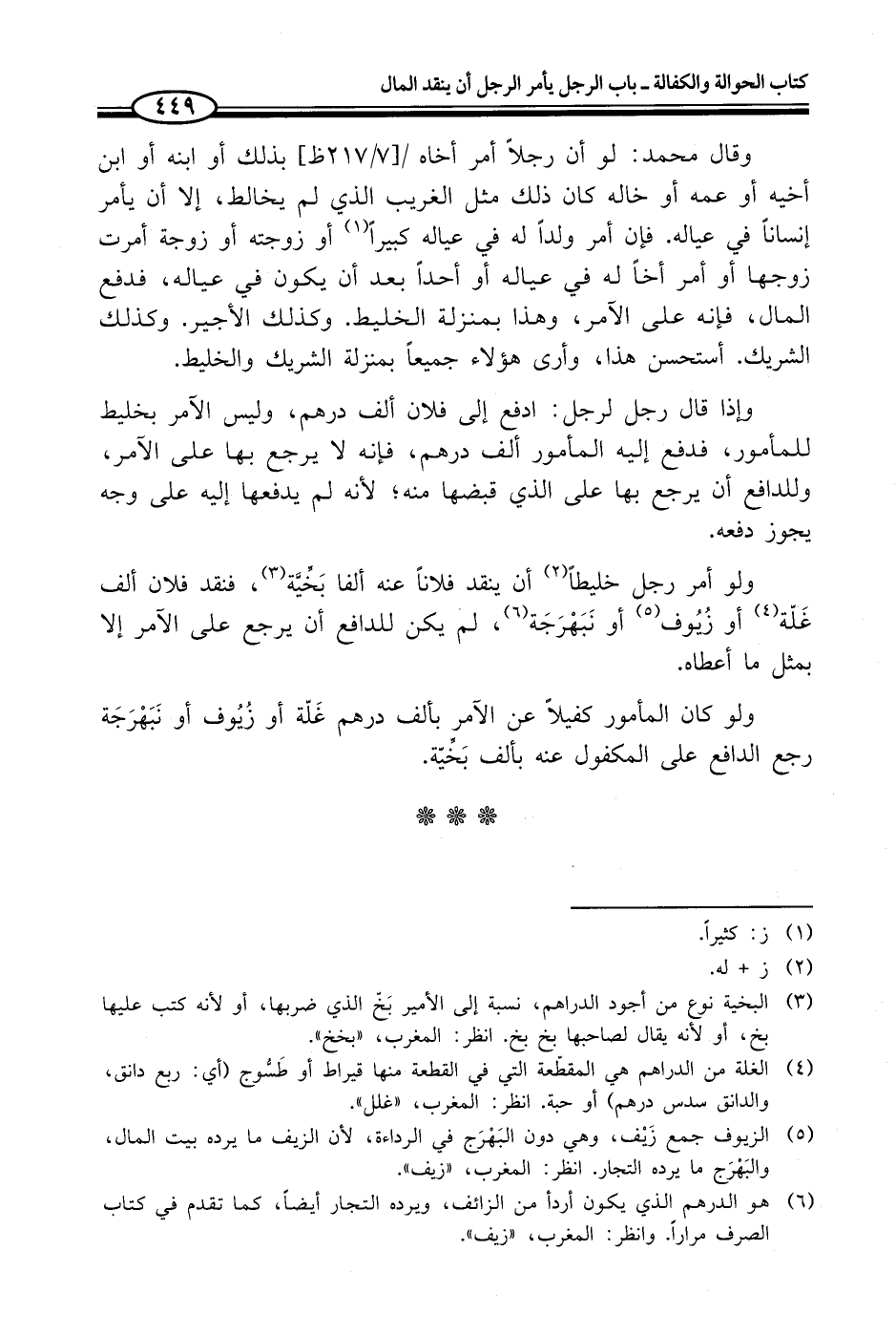 (¬4) الغلة من الدراهم هي المقطّعة التي في القطعة منها قيراط أو طَسُّوج (أي: ربع دانق، والدانق سدس درهم) أو حبة. انظر: المغرب، "غلل".