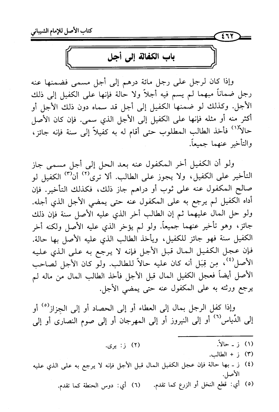 (¬4) ز - بها حالة فإن عجل الكفيل المال قبل الأجل فإنه لا يرجع به على الذي عليه الأصل.