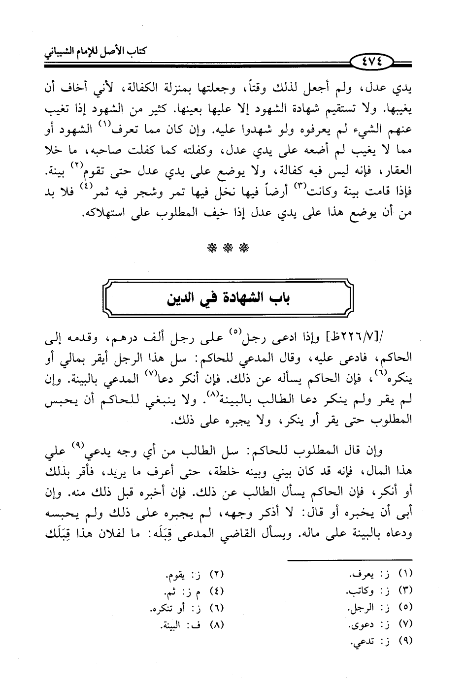 يدي عدل، ولم أجعل لذلك وقتاً، وجعلتها بمنزلة الكفالة، لأني أخاف أن يغيبها. ولا تستقيم شهادة الشهود إلا عليها بعينها. كثير من الشهود إذا تغيب عنهم الشيء لم يعرفوه ولو شهدوا عليه. وإن كان مما تعرف (¬1) الشهود أو مما لا يغيب لم أضعه على يدي عدل، وكفلته كما كفلت صاحبه، ما خلا العقار، فإنه ليس فيه كفالة، ولا يوضع على يدي عدل حتى تقوم (¬2) بينة. فإذا قامت بينة وكانت (¬3) أرضاً فيها نخل فيها تمر وشجر فيه ثمر (¬4) فلا بد من أن يوضع هذا على يدي عدل إذا خيف المطلوب على استهلاكه.