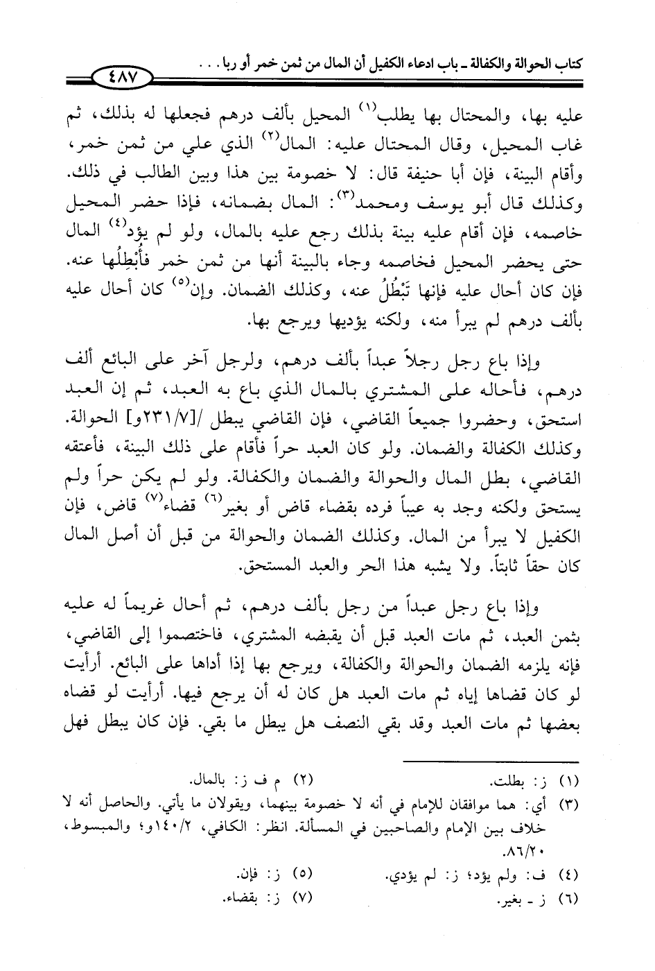 وإذا باع رجل رجلاً عبداً بألف درهم، ولرجل آخر محلى البائع ألف درهم، فأحاله على المشتري بالمال الذي باع به العبد، ثم إن العبد استحق، وحضروا جميعاً القاضي، فإن القاضي يبطل الحوالة. وكذلك الكفالة والضمان. ولو كان العبد حراً فأقام على ذلك البينة، فأعتقه القاضي، بطل المال والحوالة والضمان والكفالة. ولو لم يكن حراً ولم يستحق ولكنه وجد به عيباً فرده بقضاء قاض أو بغير (¬6) قضاء (¬7) قاض، فإن الكفيل لا يبرأ من المال. وكذلك الضمان والحوالة من قبل أن أصل المال كان حقاً ثابتاً. ولا يشبه هذا الحر والعبد المستحق.