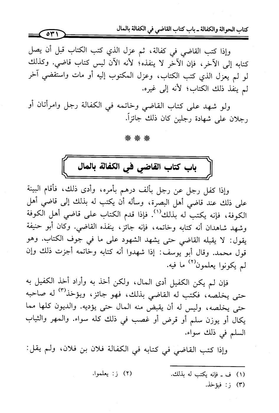 باب كتاب القاضي في الكفالة بالمال
