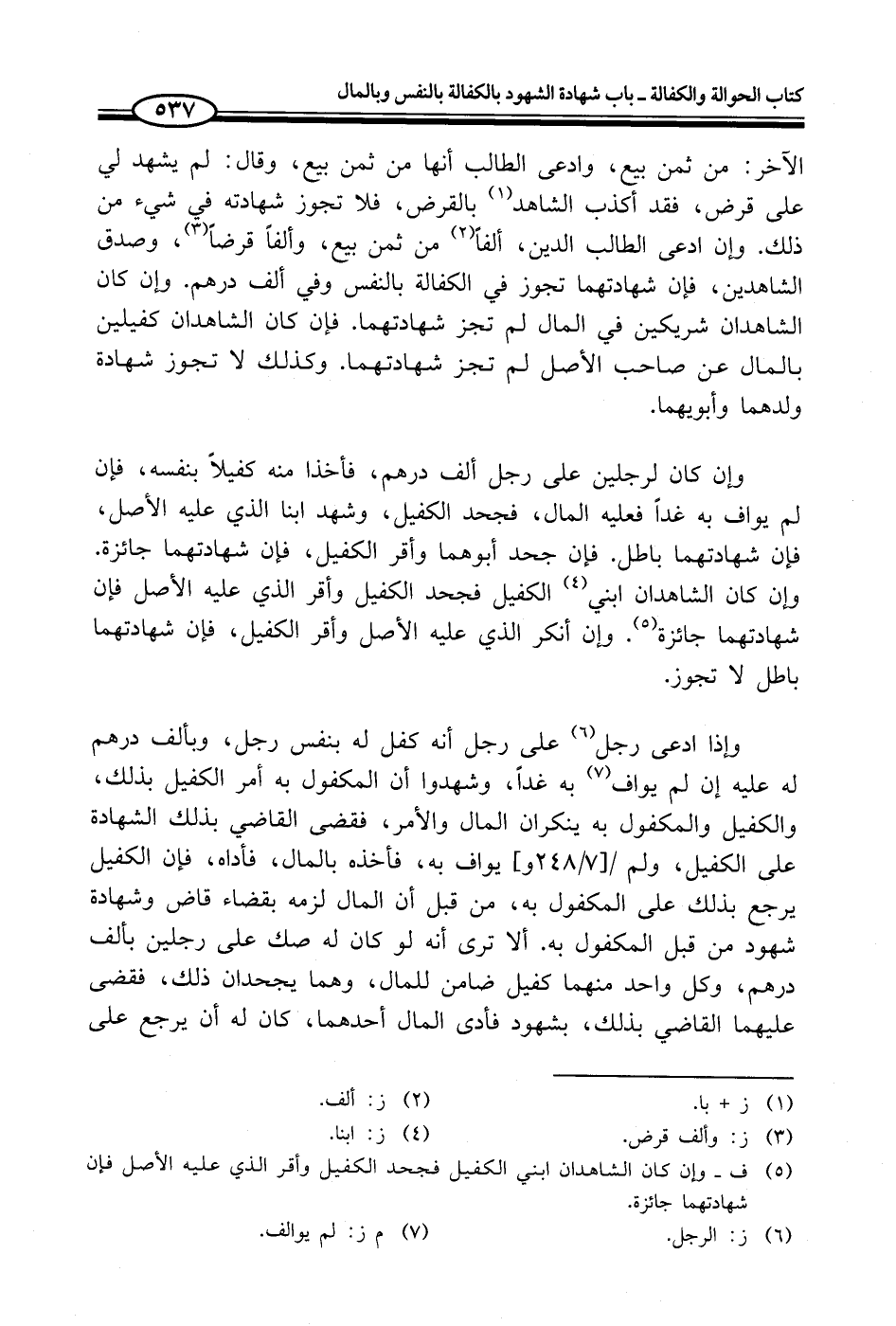 (¬5) ف - وإن كان الشاهدان ابني الكفيل فجحد الكفيل وأقر الذي عليه الأصل فإن شهادتهما جائزة.