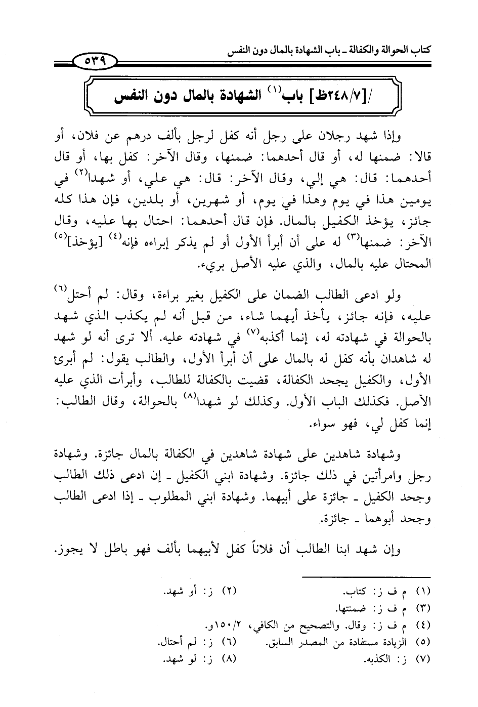 باب (¬1) الشهادة بالمال دون النفس